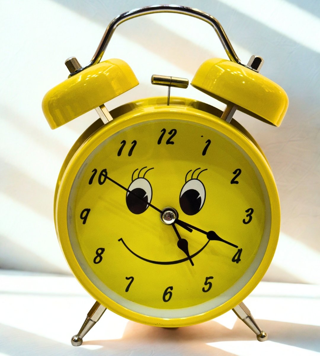 This bright and cheerful smiley yellow table clock is designed to bring happiness to your space. The fun smiling face on the dial gives a playful and positive vibe, making it perfect for kids, teenagers, or anyone who loves cute décor items. The classic twin-bell design adds a retro charm, while the bold numbers make the time easy to read.